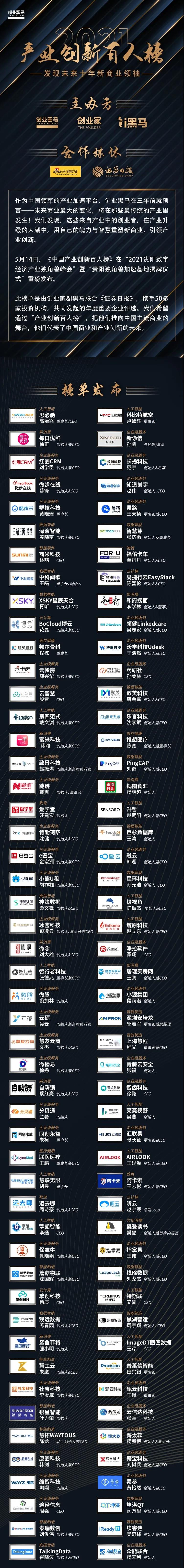 《中國(guó)產(chǎn)業(yè)創(chuàng)新百人榜》是由創(chuàng)業(yè)家&i黑馬聯(lián)合《證券日?qǐng)?bào)》、環(huán)球網(wǎng)、新浪財(cái)經(jīng)、財(cái)聯(lián)社旗下科創(chuàng)板日?qǐng)?bào),攜手50多家知名投資機(jī)構(gòu),共同發(fā)起的年度重要?jiǎng)?chuàng)業(yè)家評(píng)選,旨在尋找產(chǎn)業(yè)中最具代表性的“產(chǎn)業(yè)創(chuàng)新推動(dòng)者”,并將它們推上數(shù)字化時(shí)代的舞臺(tái)中央,展示其獨(dú)特價(jià)值。