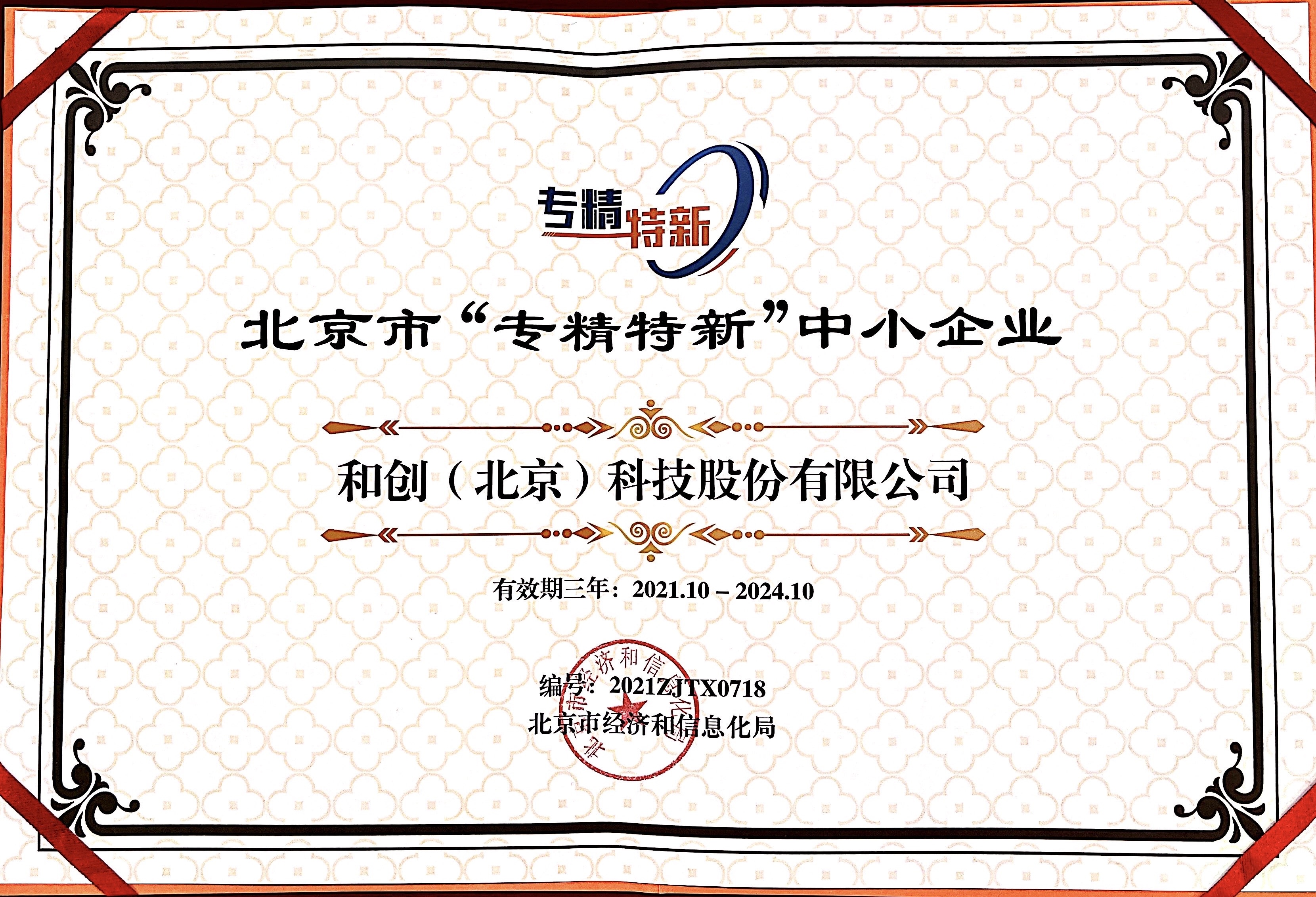 2021年10月29日,北京市經(jīng)濟(jì)和信息化局將北京市2021年度第六批擬認(rèn)定“專精特新”中小企業(yè)名單予以公示,和創(chuàng)(北京)科技股份有限公司(以下簡稱“公司”)榮登榜單,此次公示期為10月29日至11月4日,目前已通過公示期。
