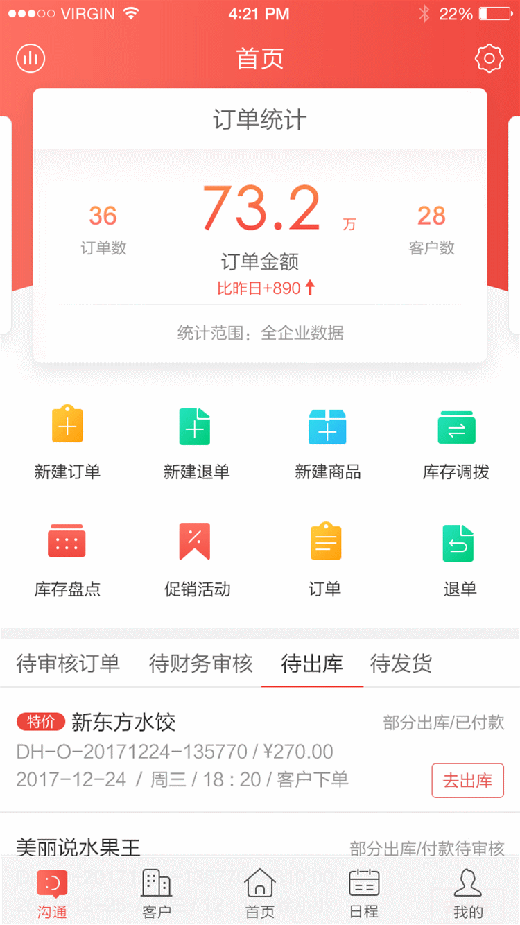 紅圈訂單手機界面示例圖