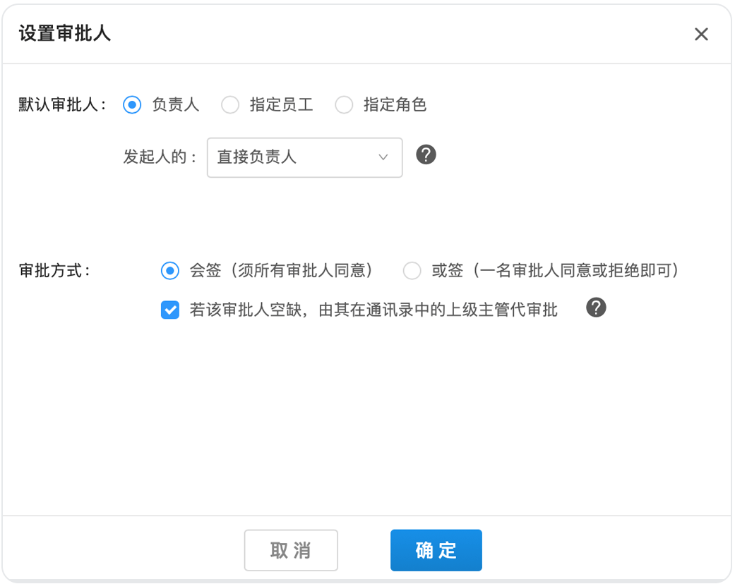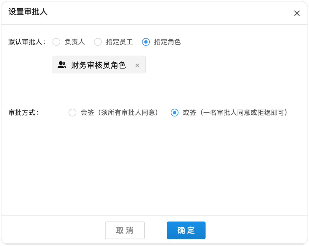 如果小王的公司對報(bào)銷把控比較嚴(yán)格,要求兩個(gè)財(cái)務(wù)審核同事全部同意后流程才能通過,那么可以在后臺將他們設(shè)置成“多人會簽”。