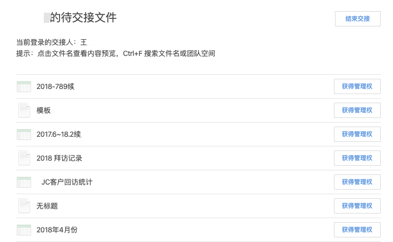 在這一過(guò)程中,交接人可以看到離職員工的文件情況: