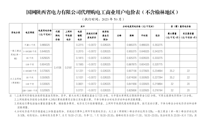 近日,陜西電網(wǎng)有限責(zé)任公司公布了陜西省2023年10月電網(wǎng)?代理購(gòu)電價(jià)格?,為0.4016元/千瓦時(shí),與2月電網(wǎng)代購(gòu)用戶電價(jià)0.466元/千瓦時(shí)對(duì)比,下降了0.0644元/千瓦時(shí),降幅13.82%。