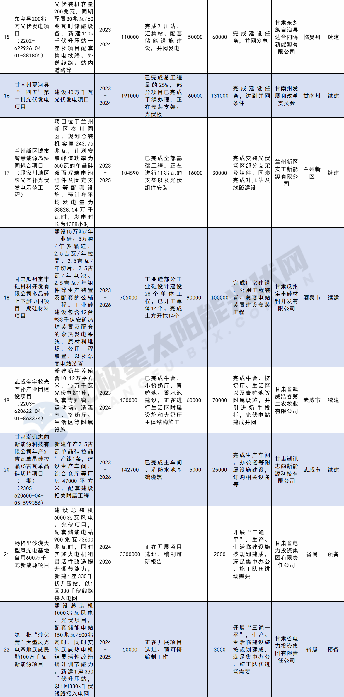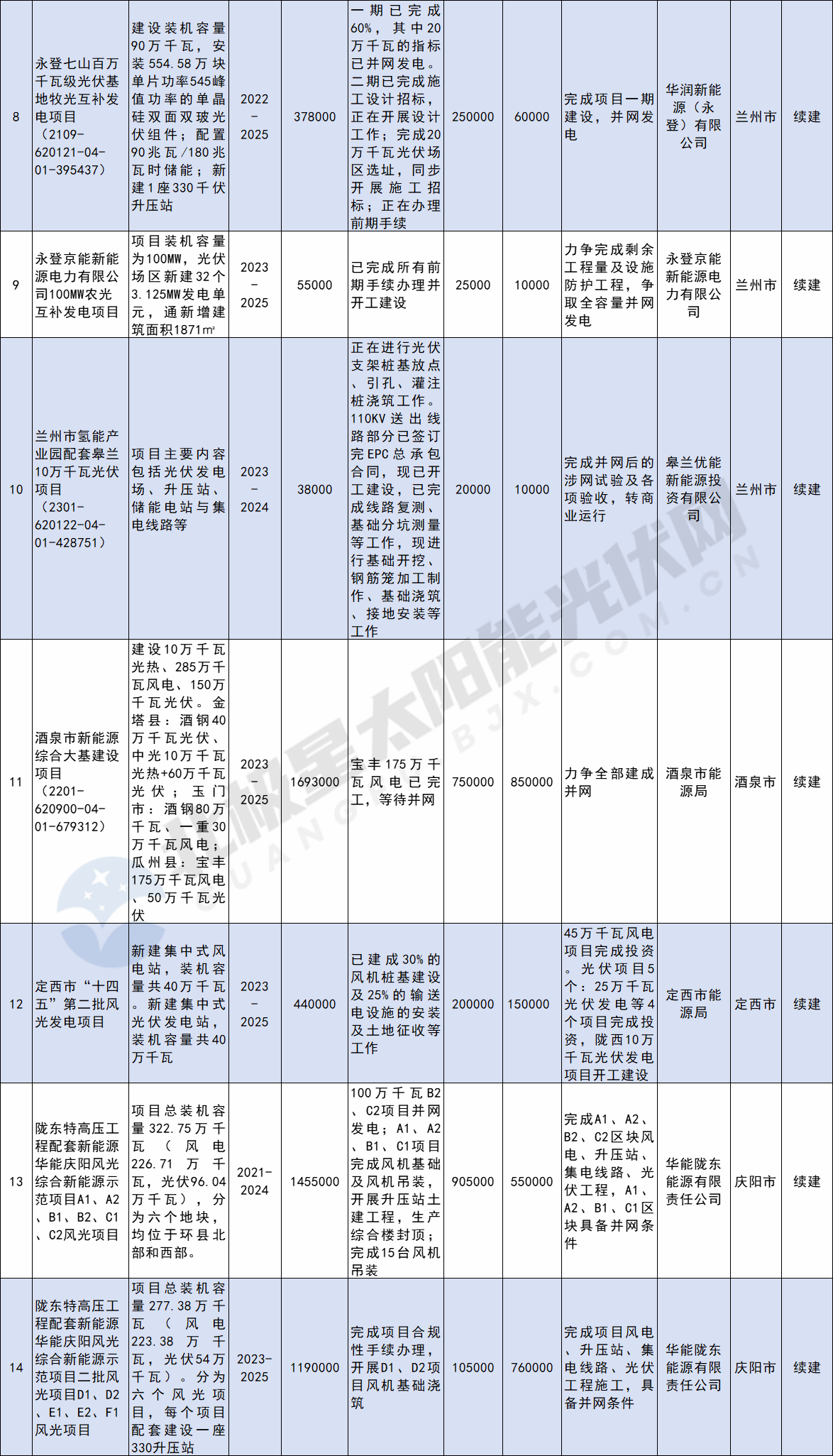 2023年12月22日,甘肅省發(fā)改委發(fā)布關(guān)于征求《甘肅省2024年省列重大建設(shè)項(xiàng)目投資計劃(草案)》意見的函,經(jīng)梳理統(tǒng)計,共涉及11個光伏項(xiàng)目,總投資額達(dá)1232.329億元。項(xiàng)目詳情如下:
