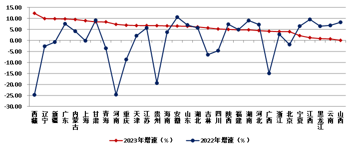 圖24 2023年各地區建筑業企業房屋建筑施工面積及增長情況