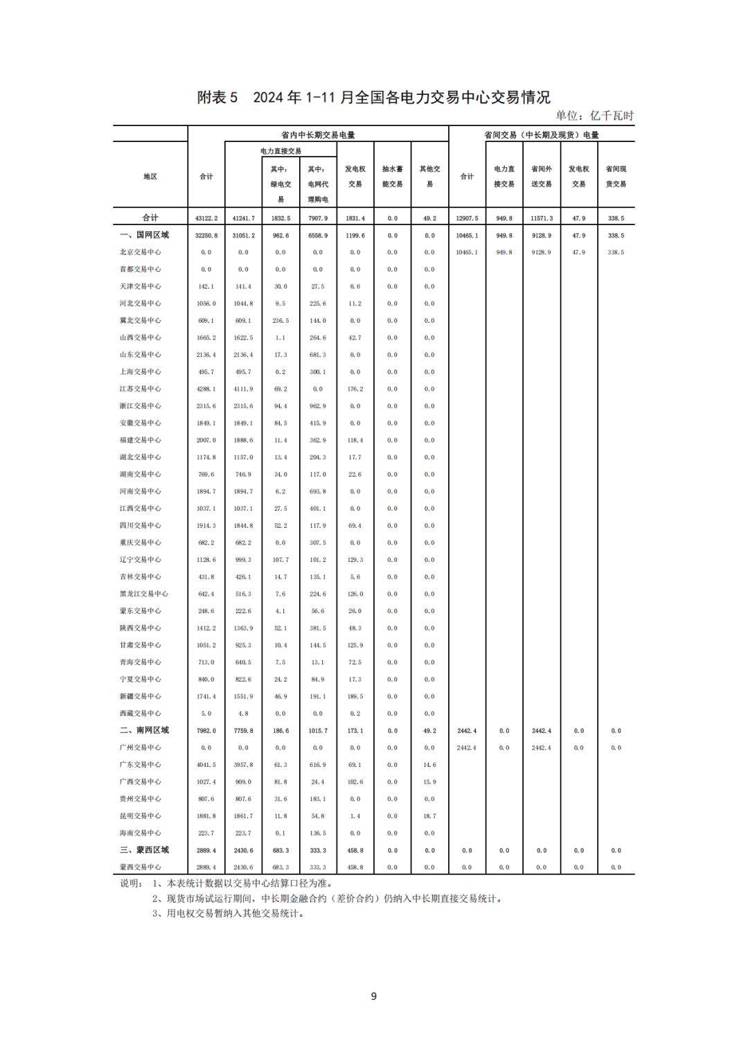 電力交易方面,在全國電力交易中心中,省內交易電量合計為43122.2億千瓦時,其中電力直接交易41241.7億千瓦時( 含綠電交易1832.5千瓦時、電網代理購電7907.9億千瓦時)。