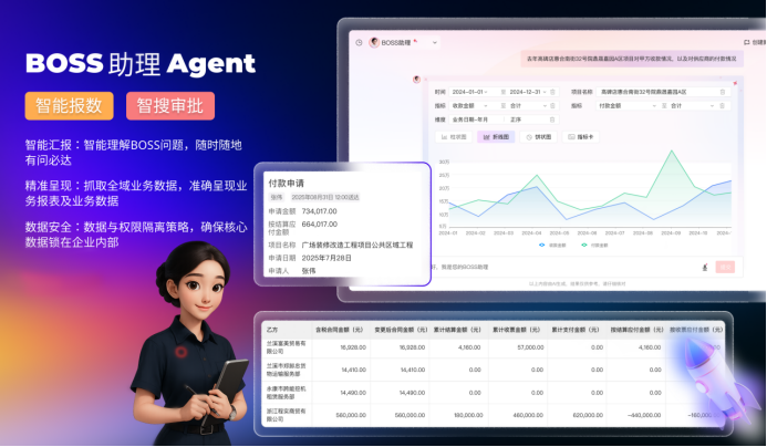 您只需像聊天一樣提出問題,例如“上月華東區(qū)的項(xiàng)目利潤(rùn)率是多少?”或“XXX合同的付款進(jìn)度到哪了?”,BOSS助理Agent即可實(shí)現(xiàn)智能報(bào)數(shù),有問必答,隨時(shí)匯報(bào)。它能夠智能理解管理者任何時(shí)間下達(dá)的指令,快速響應(yīng)并抓取全域業(yè)務(wù)數(shù)據(jù),精準(zhǔn)呈現(xiàn)多維報(bào)表及數(shù)據(jù)卡片,告別需多人匯報(bào)的繁瑣與校驗(yàn)。同時(shí),通過紅圈系統(tǒng)權(quán)限和數(shù)據(jù)建模能力,確保核心數(shù)據(jù)不被大模型采集與留存,保障數(shù)據(jù)安全。