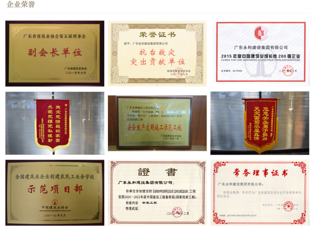 廣東永和建設(shè)集團有限公司成立于2007年3月,注冊資金6億元,擁有3個一級資質(zhì):建筑工程施工總承包一級、市政公用工程施工總承包一級、建筑裝修裝飾工程一級,以及建筑機電安裝工程等17項專業(yè)承包資質(zhì),現(xiàn)已發(fā)展為集工程設(shè)計、施工、建筑材料供應(yīng)鏈、建筑勞務(wù)輸出一體化多元化發(fā)展的廣東省百強民營企業(yè)。 集團管理機構(gòu)健全,實行區(qū)域化經(jīng)營管理,隨著集團業(yè)務(wù)的不斷拓展,項目遍及廣東、廣西、海南、江西等省份。